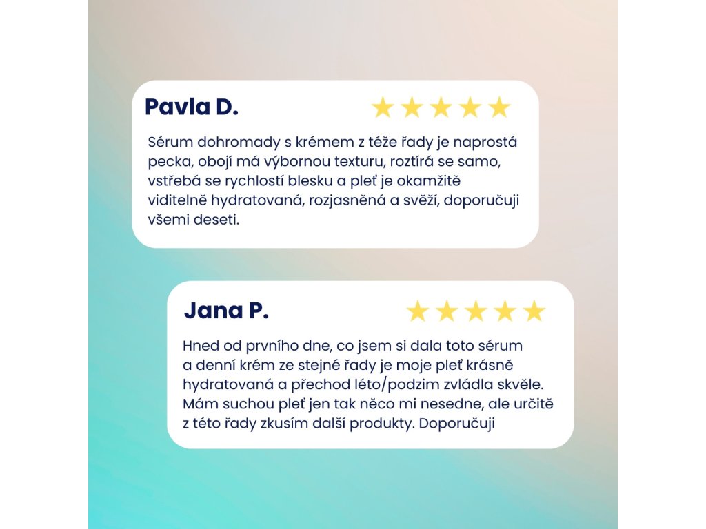 Hned od prvního dne, co jsem si dala toto sérum a denní krém ze stejné řady je moje pleť krásně hydratovaná a přechod léto/podzim zvládla skvěle. Mám suchou pleť jen tak něco mi nesedne, ale určitě z této řady zkusím další produkty. Doporučuji