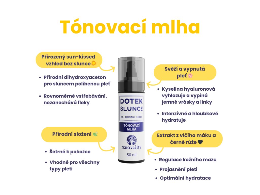 Krásný den, ano, tónovací mlha je díky svému přírodnímu složení vhodná i pro citlivou a problematickou pleť, je lehká, neucpává póry a dá se použít jako podklad pod make-up, protože nezanechává mastný film a rychle se vstřebává. Pokud však máte velmi reaktivní pleť, doporučujeme provést test na malém místě, abyste se ujistila, že vám mlha plně vyhovuje. Za Renovality, Domča